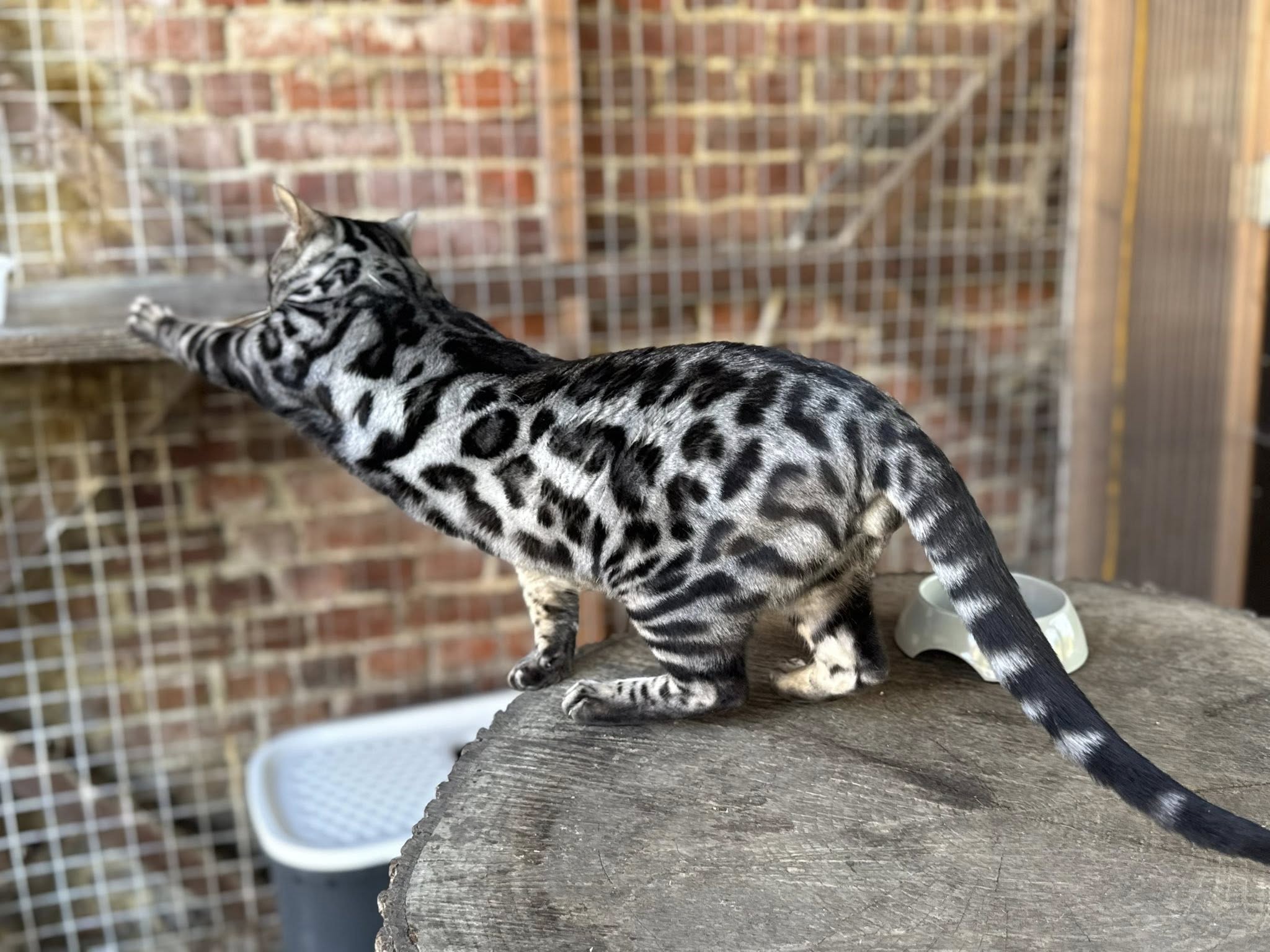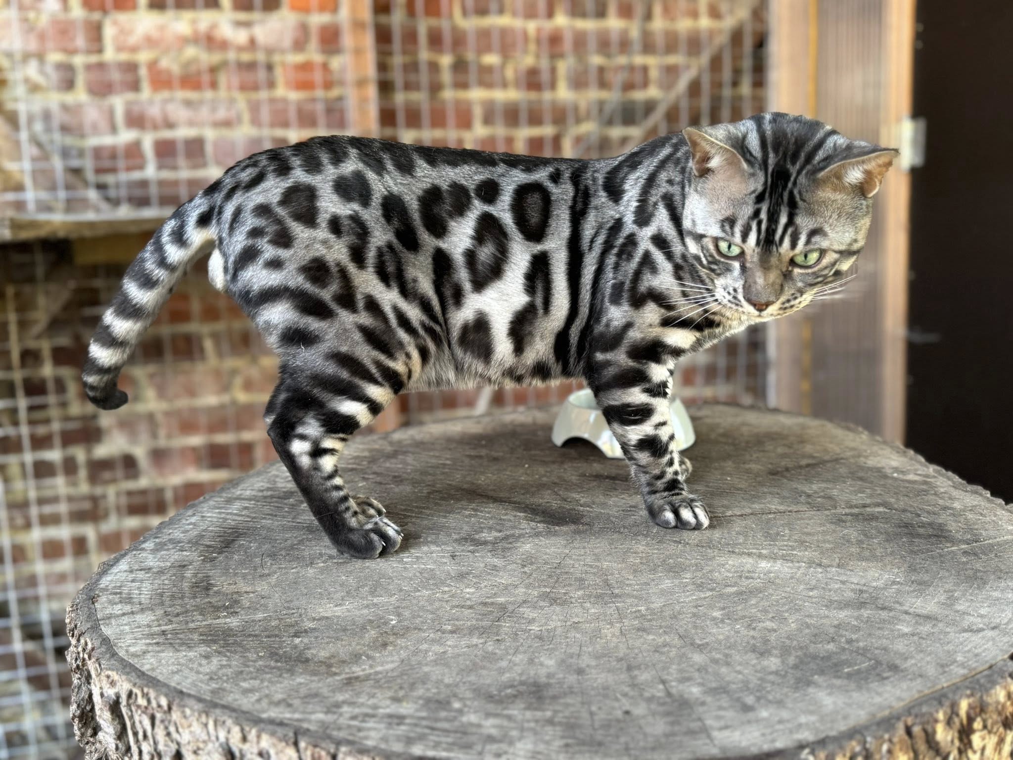 Thor est un magnifique mâle de couleur Black Silver/Rosettes. Il nous apporte une qualité de profil sur ses chatons mais également sur le contraste de robe et la texture du poil.